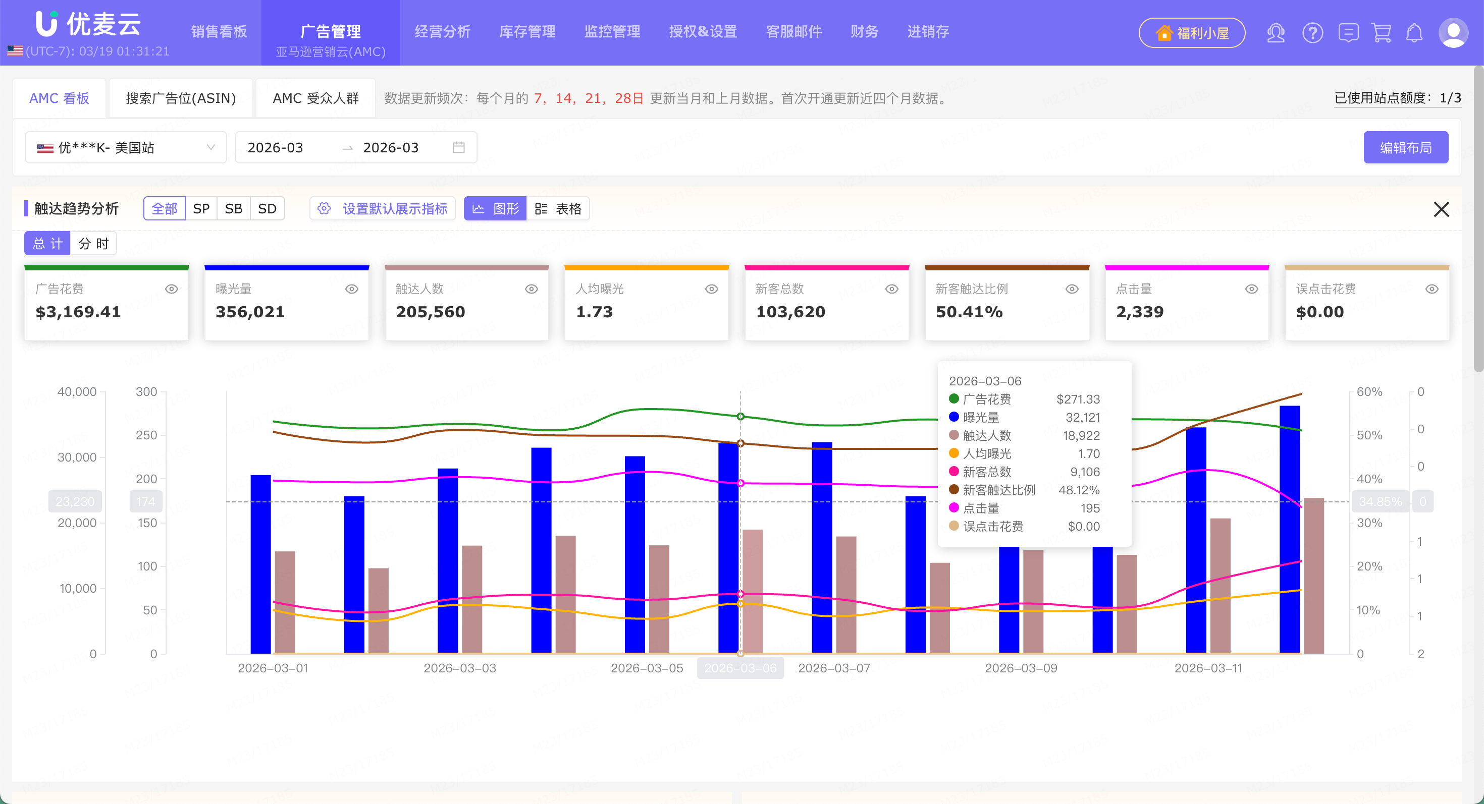 同时,你还可以在优麦云实时查看CVR、ACoS、触达人数等数据,一键调整竞价与人群范围,持续优化投放效果。