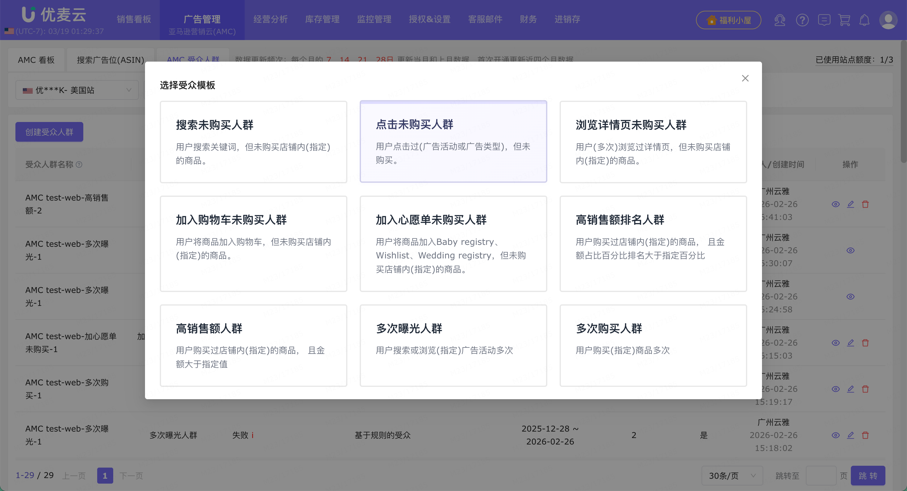 优麦云深度整合亚马逊官方AMC能力,并简化了操作流程,你无需跳转多个后台、无需学习复杂规则,即可一站式完成开通、人群创建、投放与数据监控的操作,具体步骤如下: