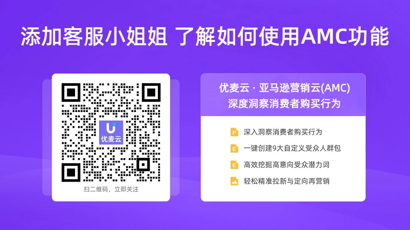 为助力亚马逊卖家朋友突破流量困局、精准定位受众,优麦云正式上线「亚马逊营销云(AMC)」功能,依托官方无代码模版与一站式分析投放操作体验,帮你深入洞察消费者购物行为,精准定位高价值人群,实现广告有效定向投放,轻松提升广告转化与利润!