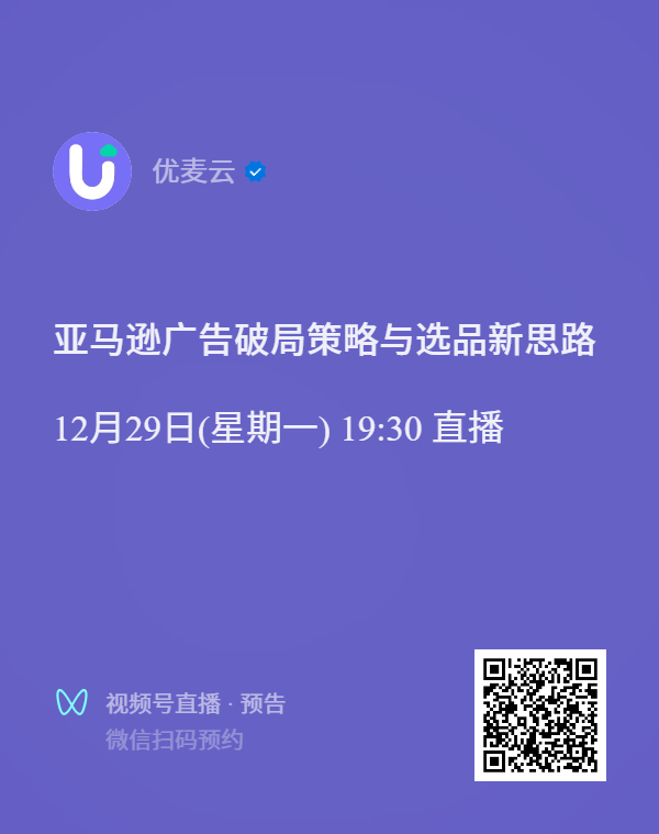 我们会邀请有实战经验的行业大咖,在官方视频号,分享亚马逊运营技巧、广告打法等实操干货!微信扫描下方直播预告二维码,即可免费报名哦~