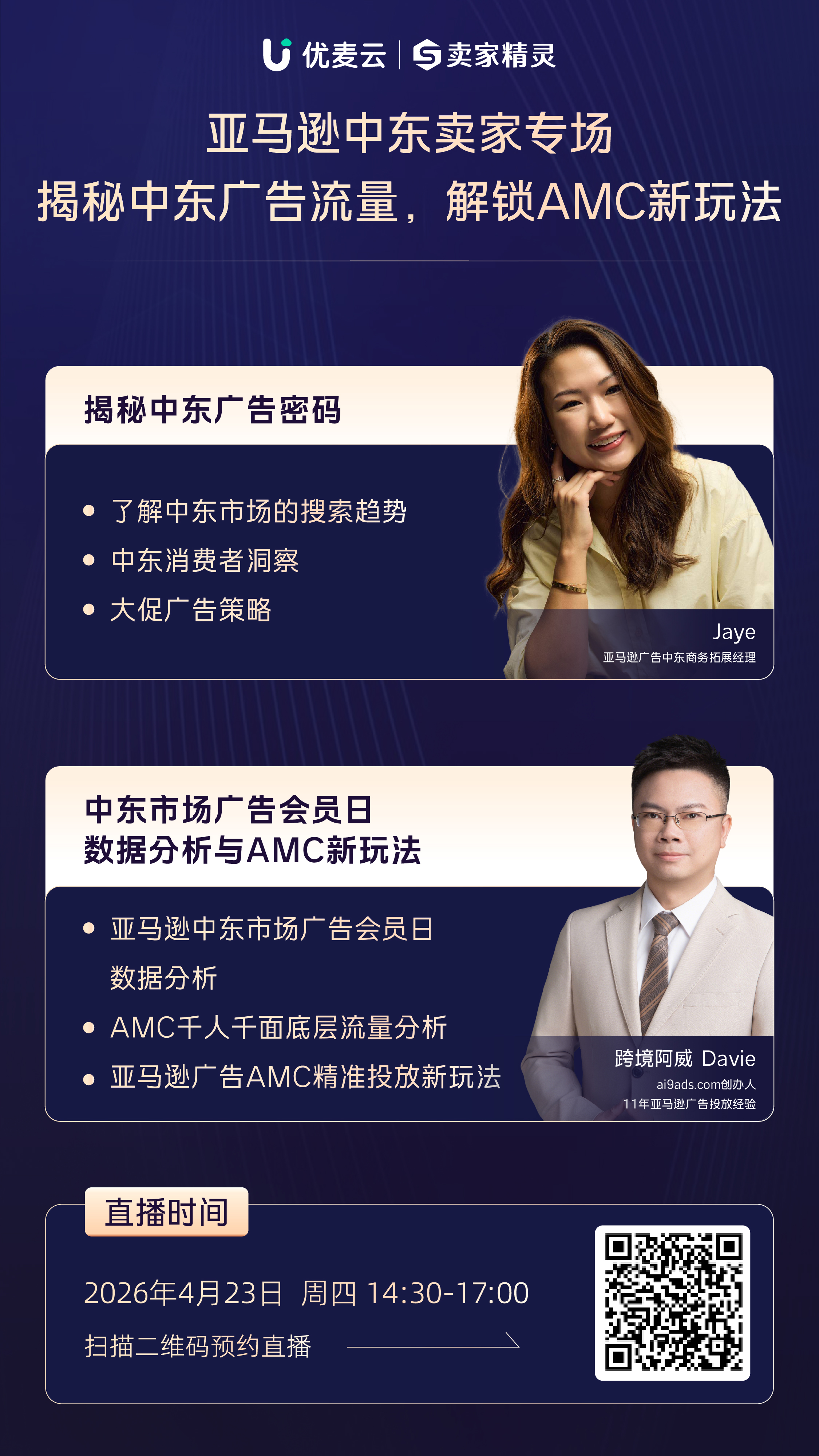 【大咖分享课】2026.04.23 - 亚马逊中东卖家专场:揭秘中东广告流量,解锁AMC新玩法