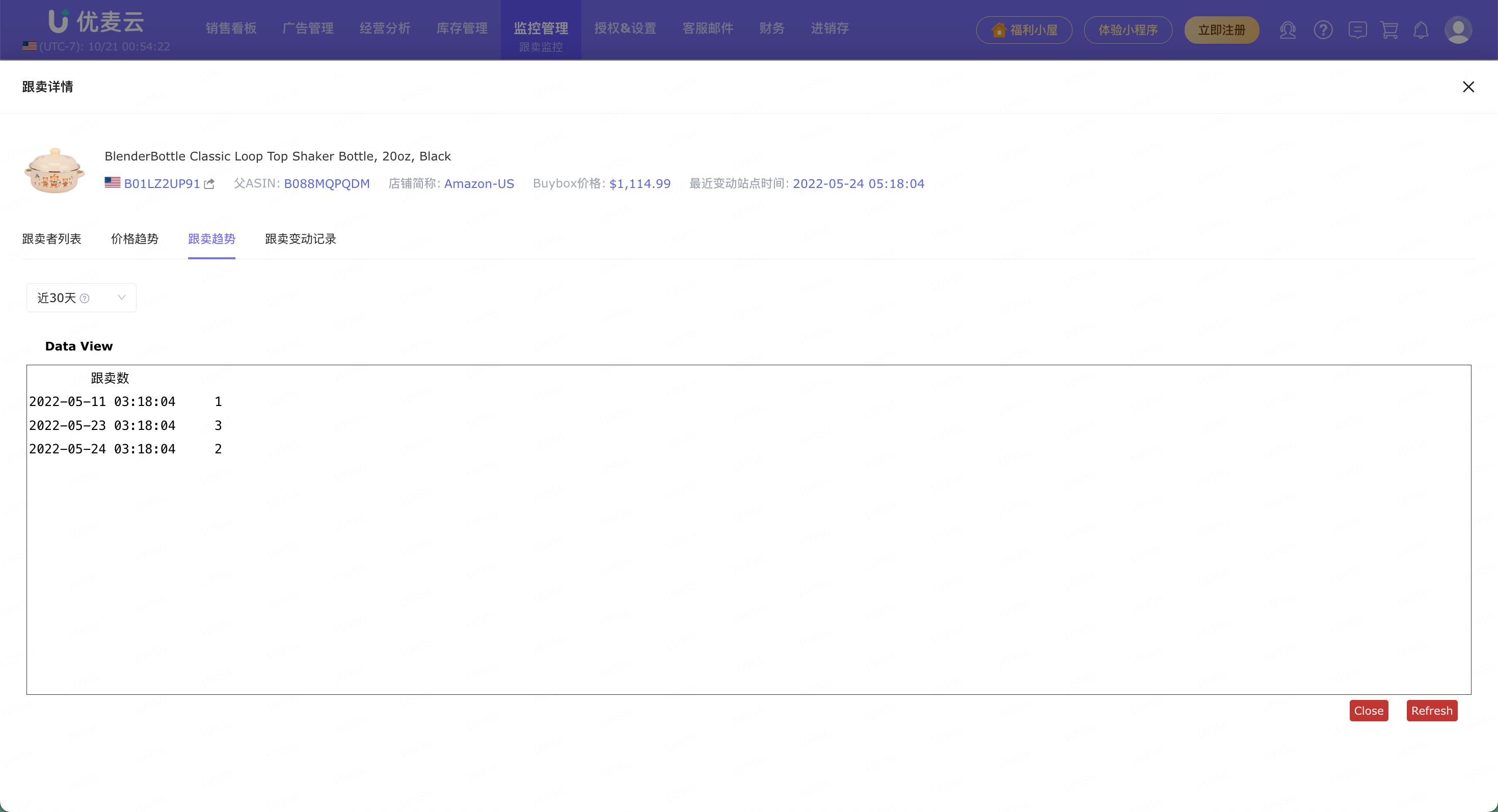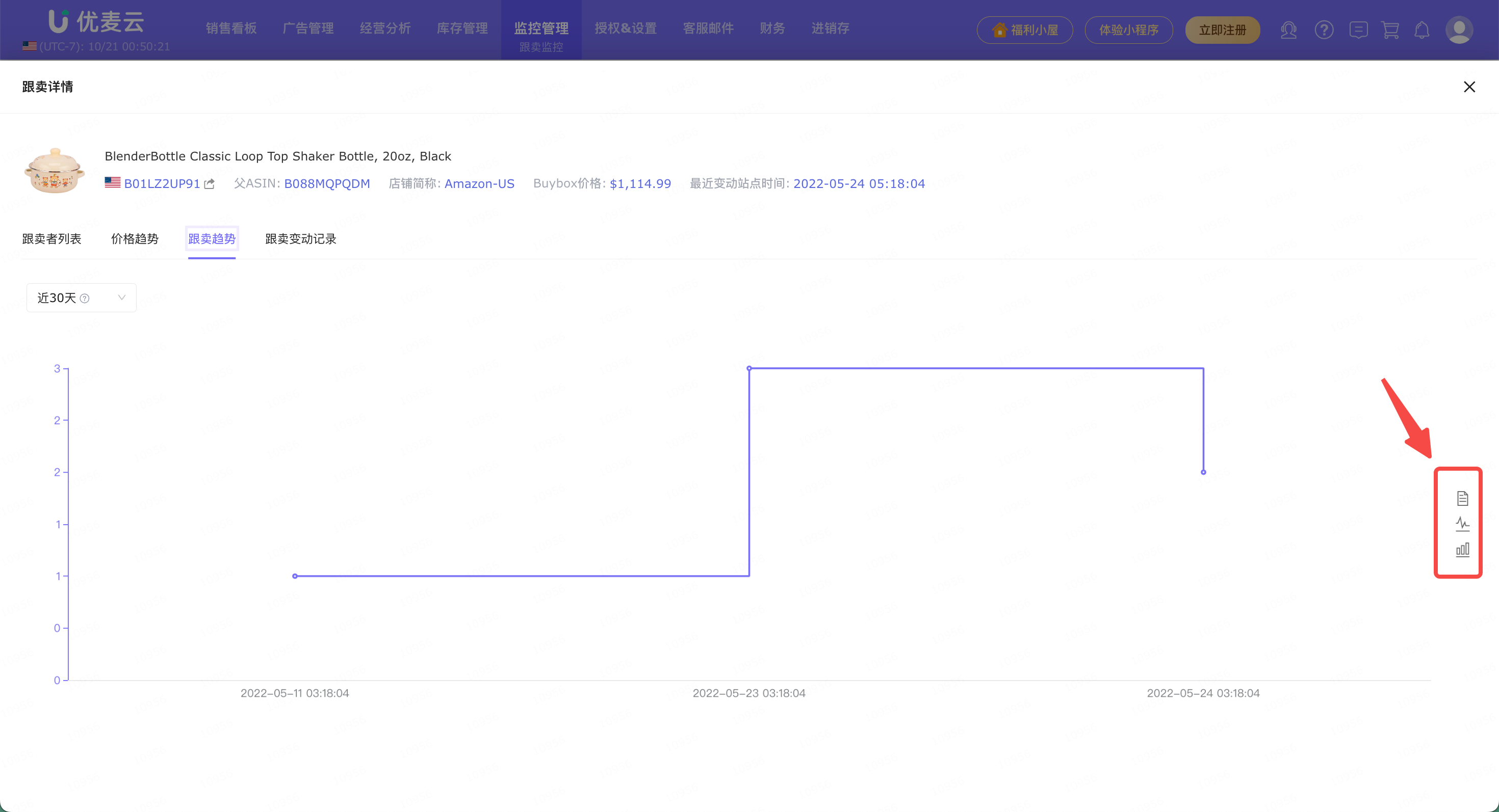 除了以上的跟卖核心数据列表,我们还可以进一步查看该跟卖的详情,了解被跟卖的历史与动态。