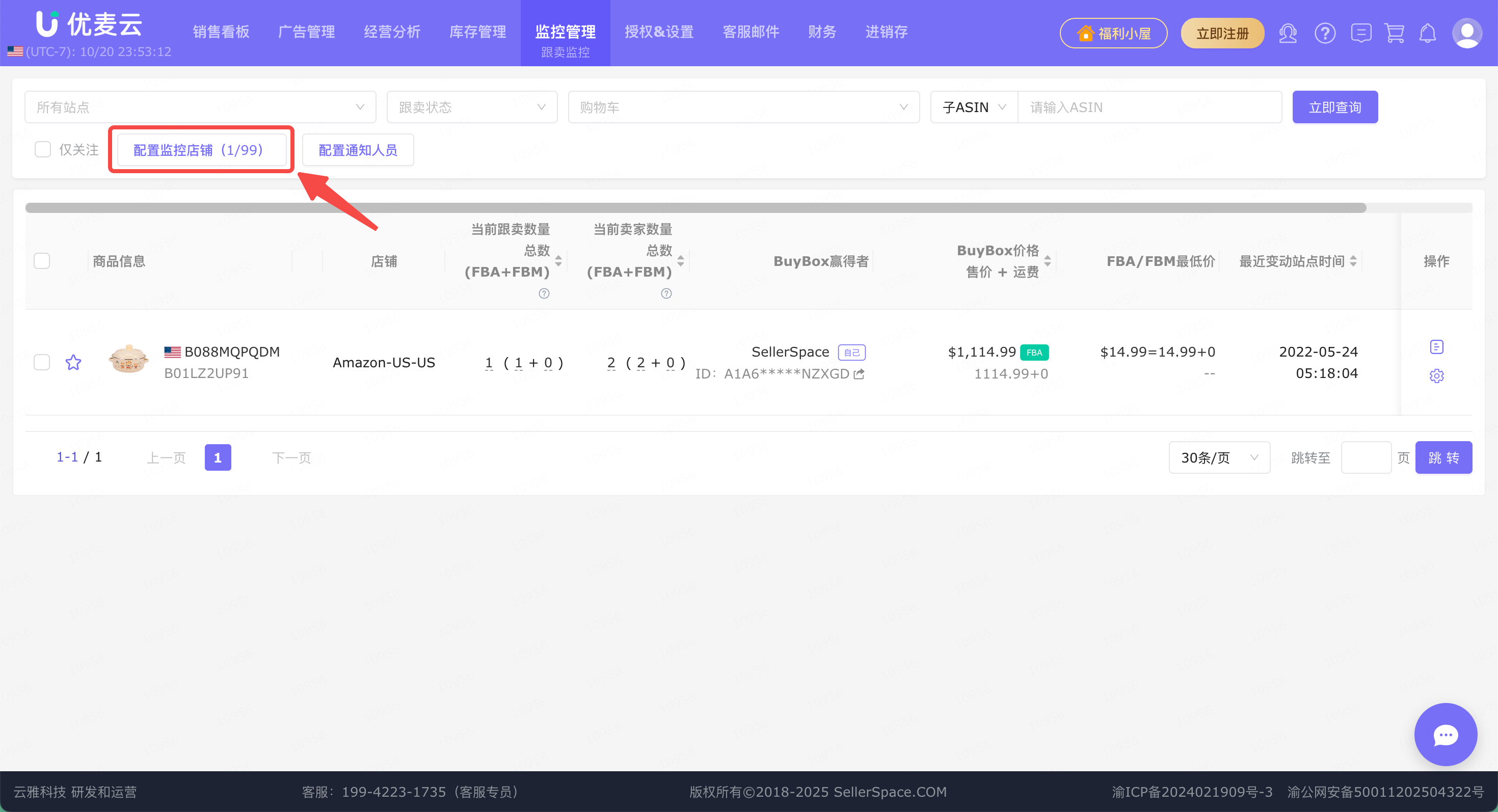 进入“配置跟卖监控店铺”页面,