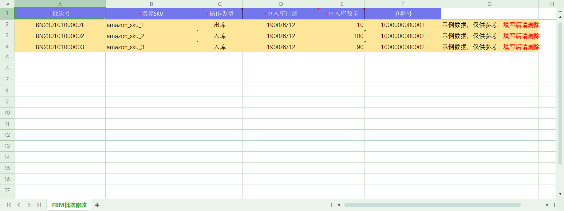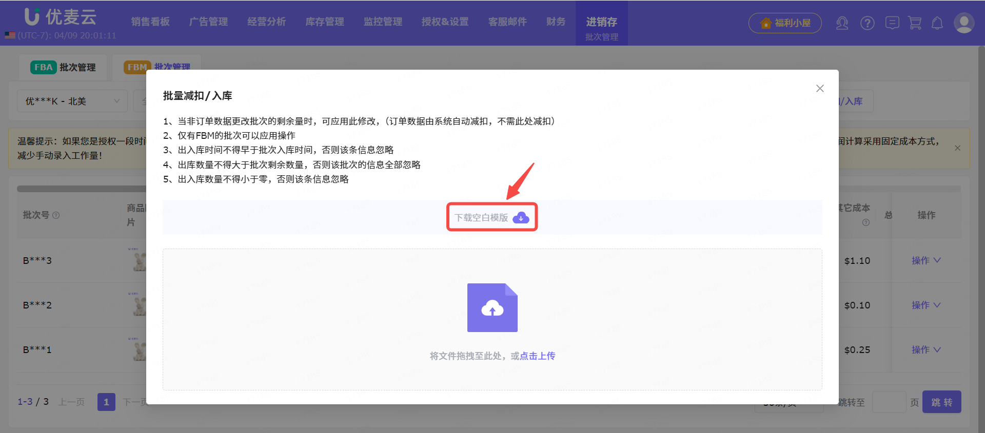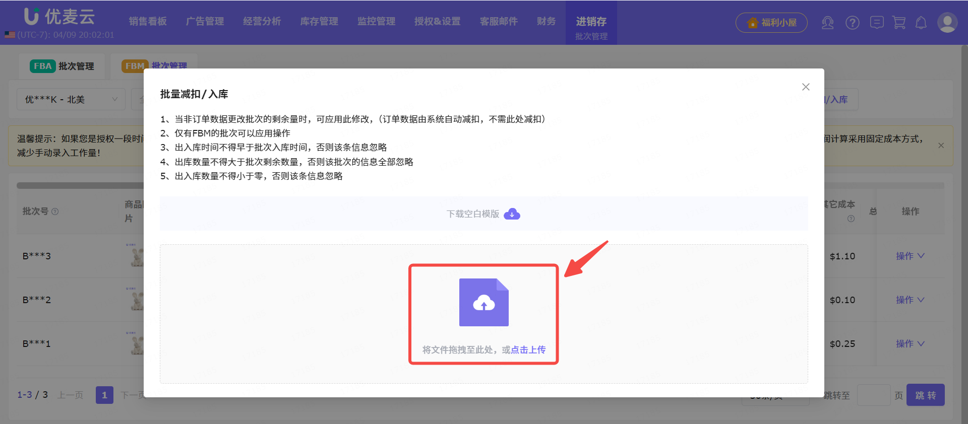 与FBA不同,FBM的扣减批次,需要我们手动上传到系统。