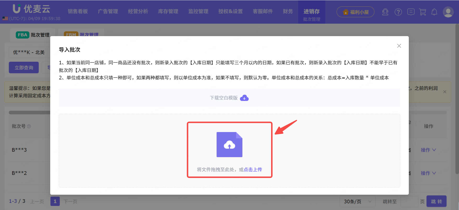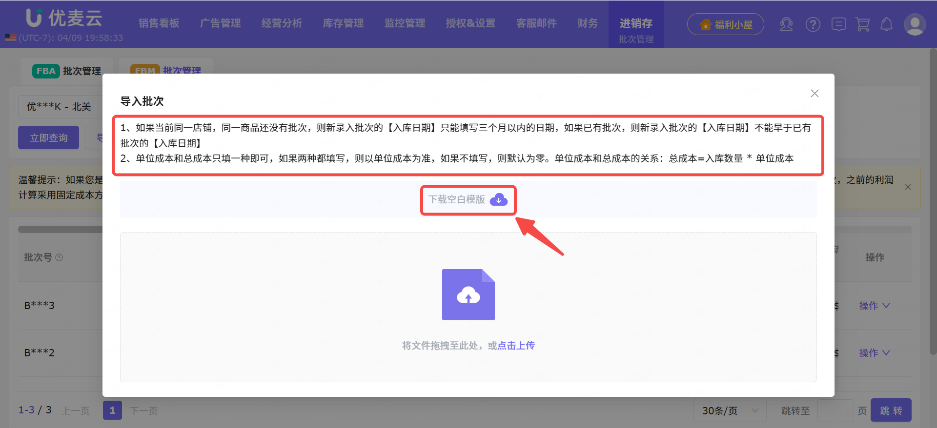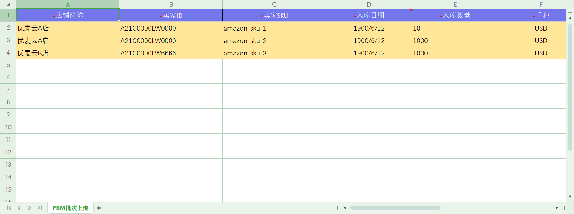 与FBA不同,FBM的扣减批次,需要我们手动上传到系统。