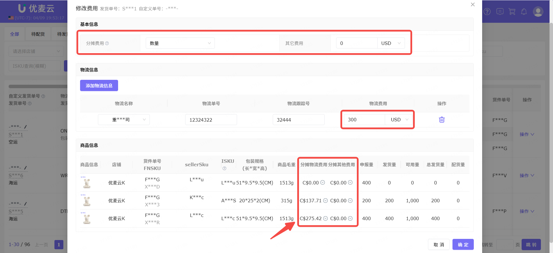头程成本:“发货单”功能中,查看到的该货件发货物流费用与其他费用。